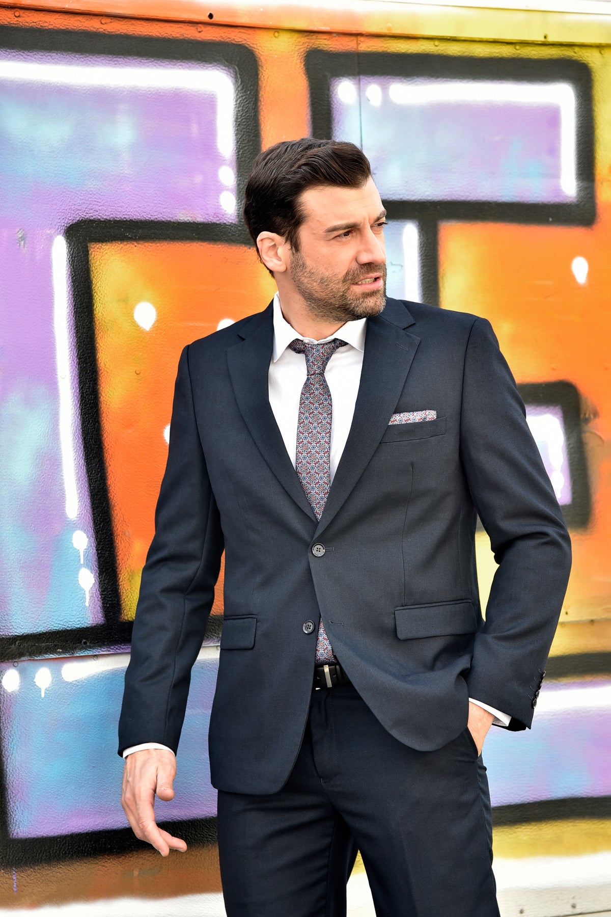 Aνδρικό Κουστούμι σε Κανονική Γραμμή Μπλε Σκούρο KR500