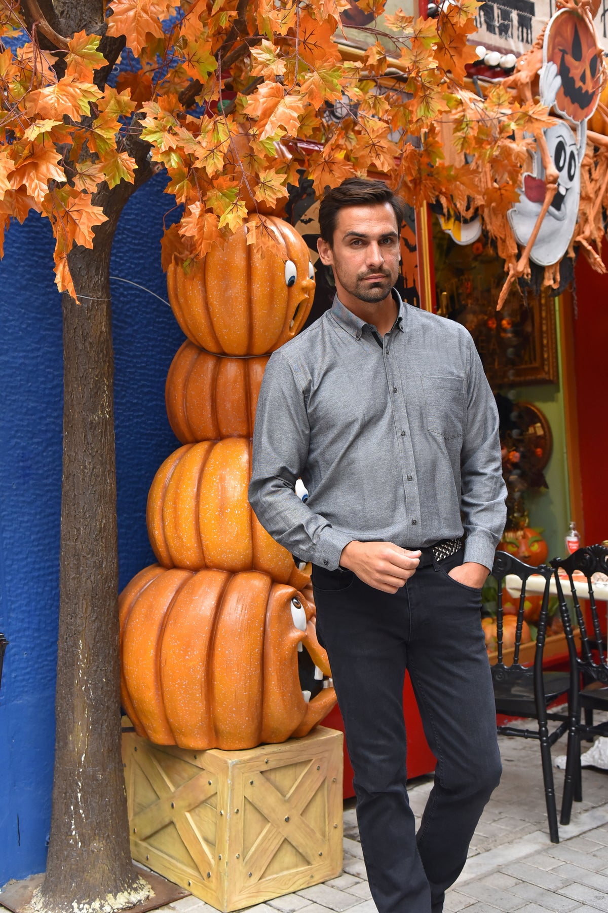 Ανδρικό Πουκάμισο Γκρι με Μαύρη Λεπτομέρεια