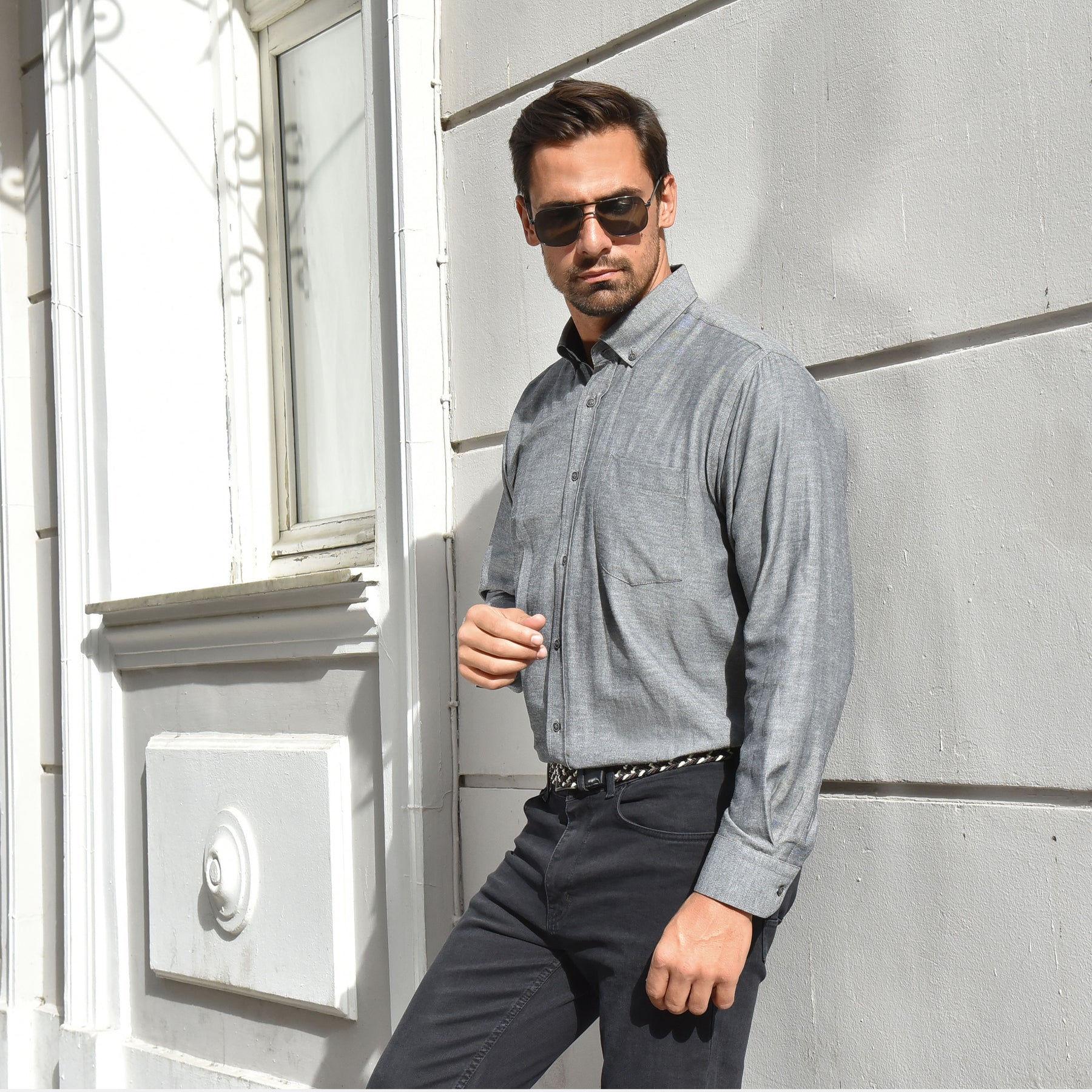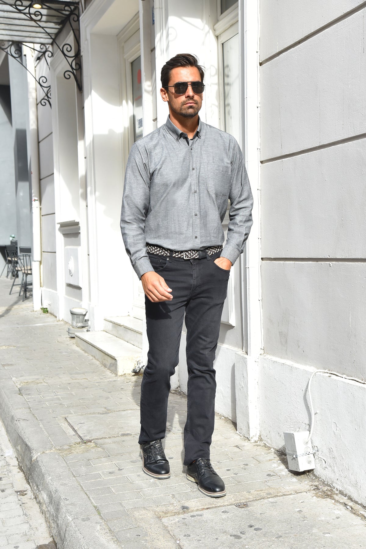 Ανδρικό Πουκάμισο σε Γκρι Χρώμα με Μαύρη Λεπτομέρεια PKM990