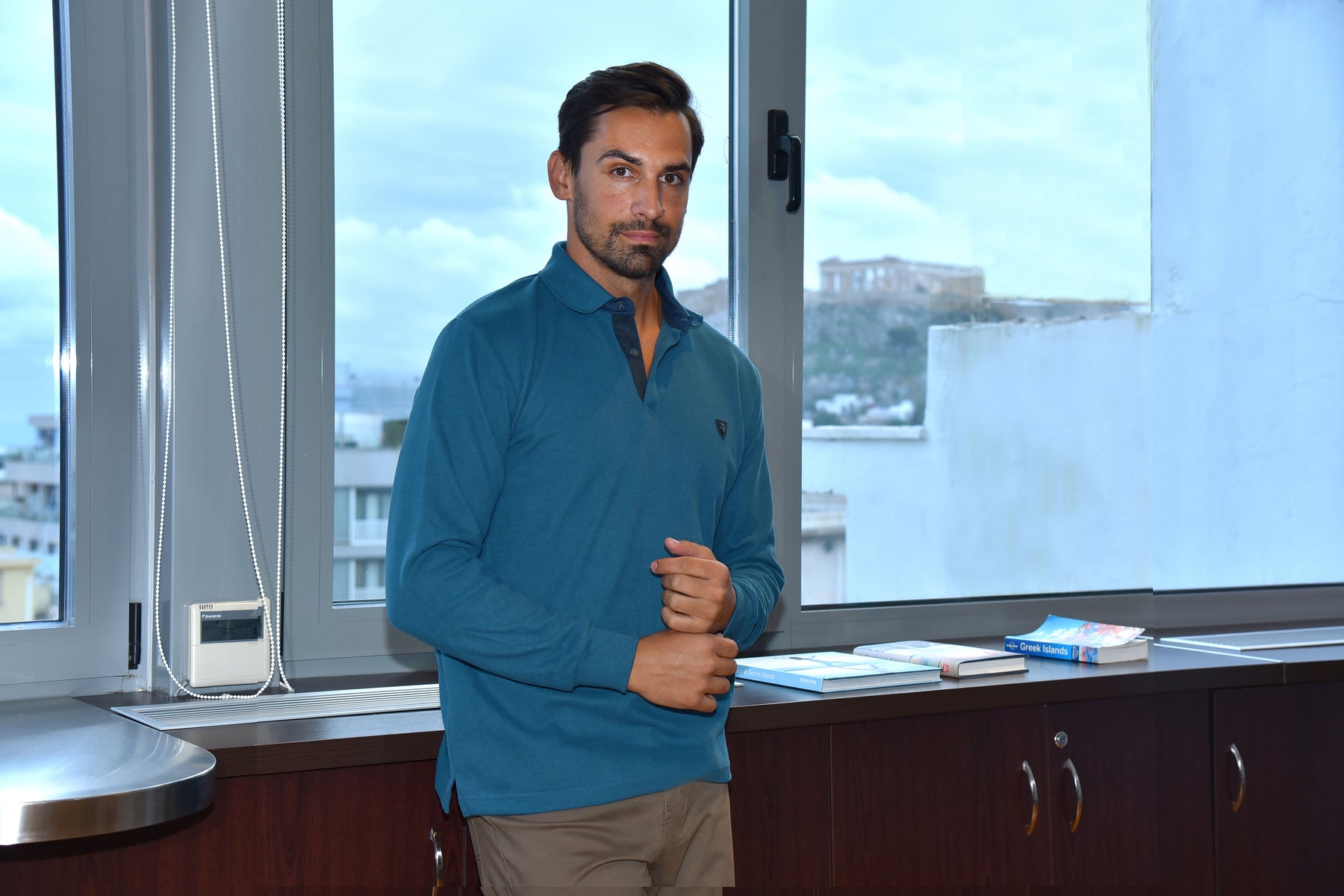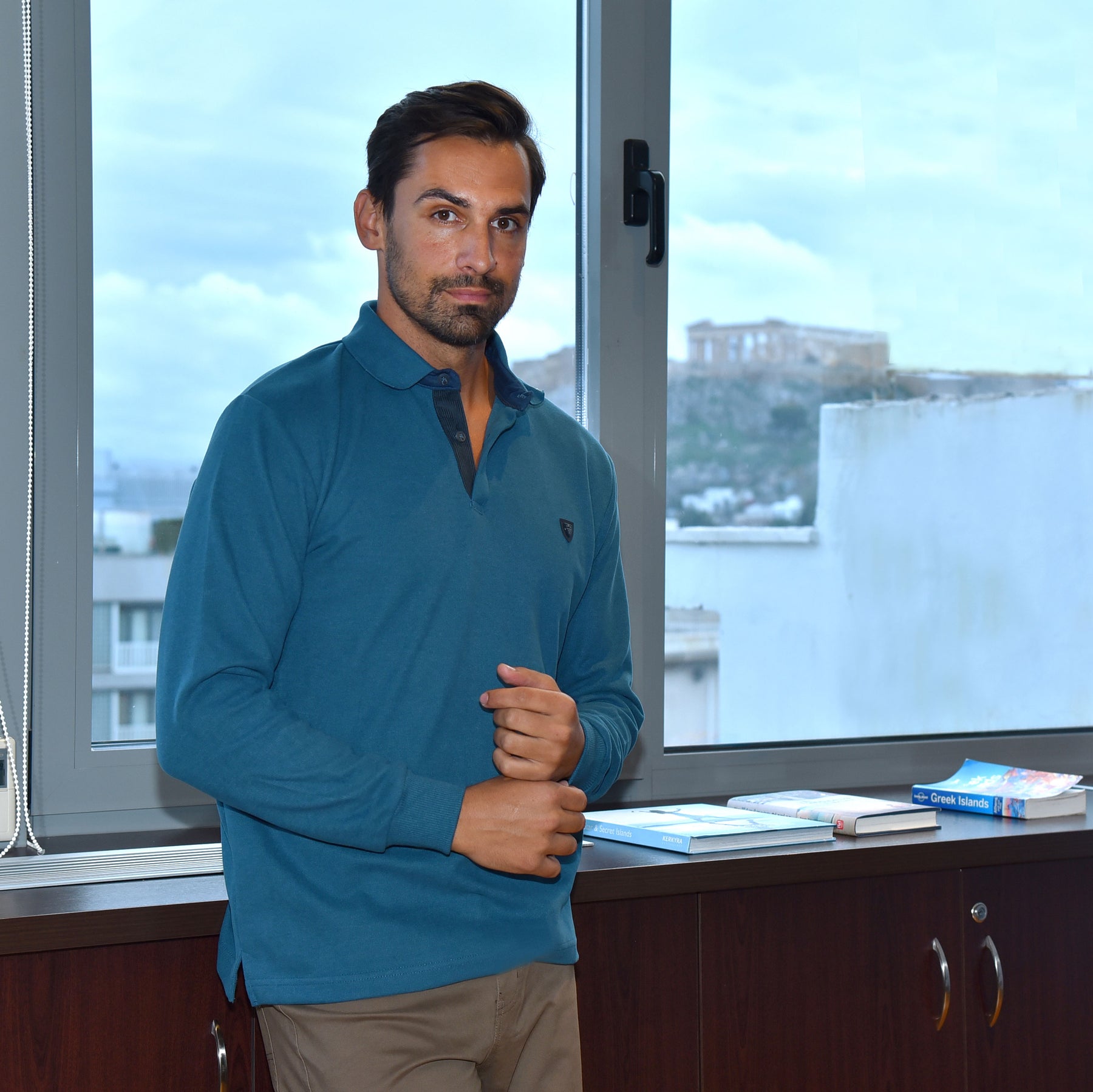 Ανδρική Μπλούζα Άνετη Γραμμή σε Πετρόλ Χρώμα BLM1154