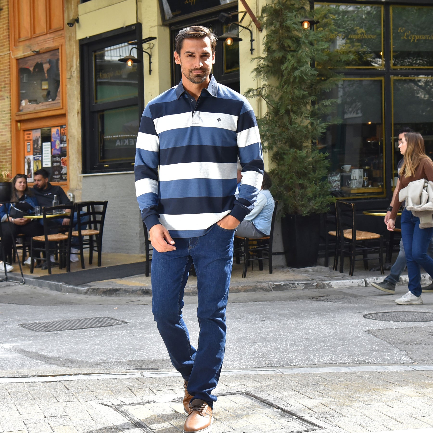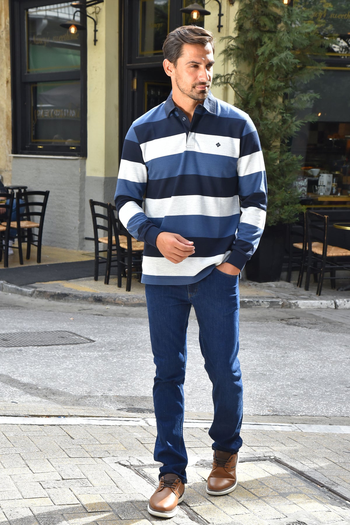 Ανδρική Μπλούζα Ριγέ Ανετη Γραμμή Μπλε BLM1315