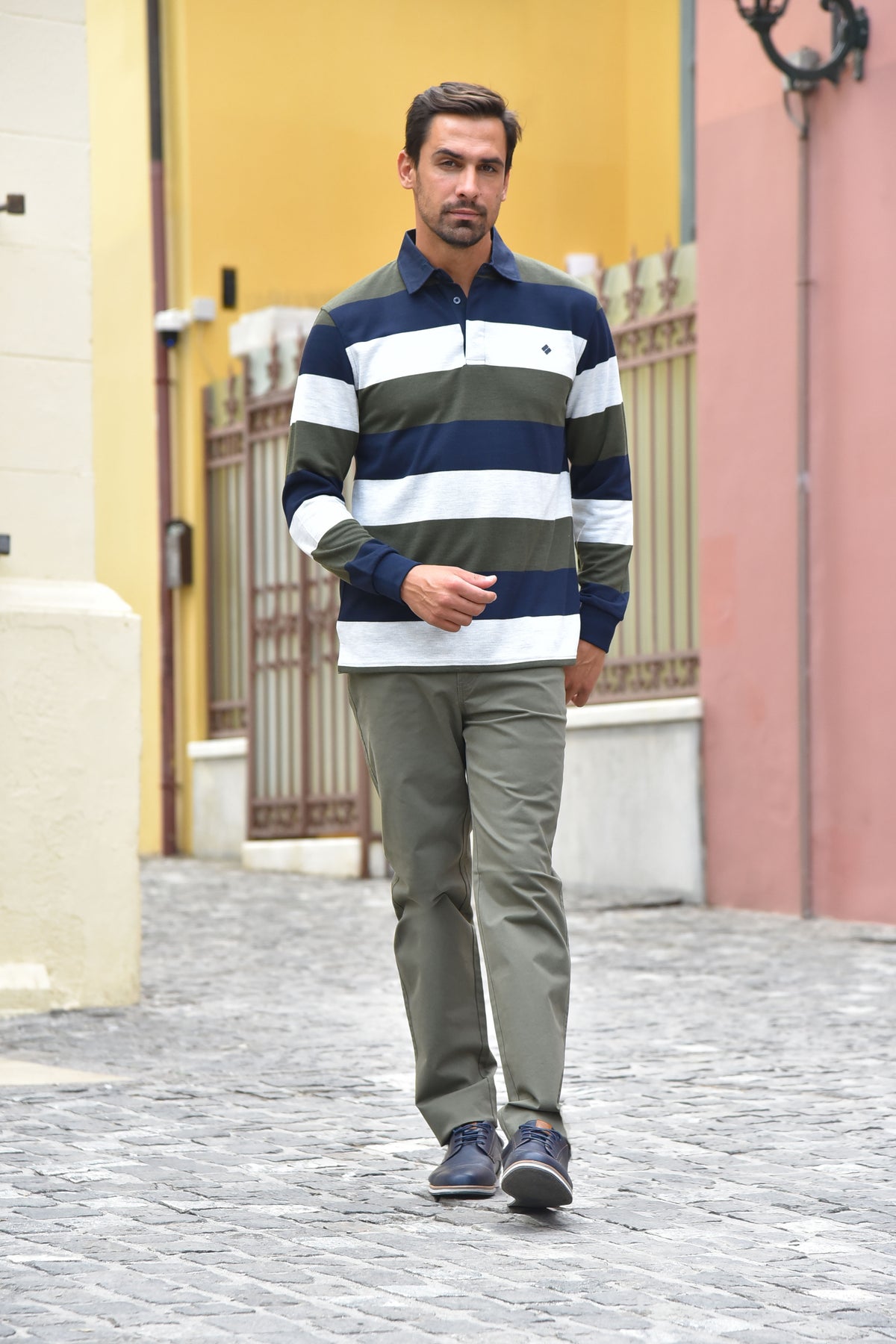 Ανδρική Μπλούζα Ριγέ Ανετη Γραμμή Μπλε/Πράσινο BLM1316