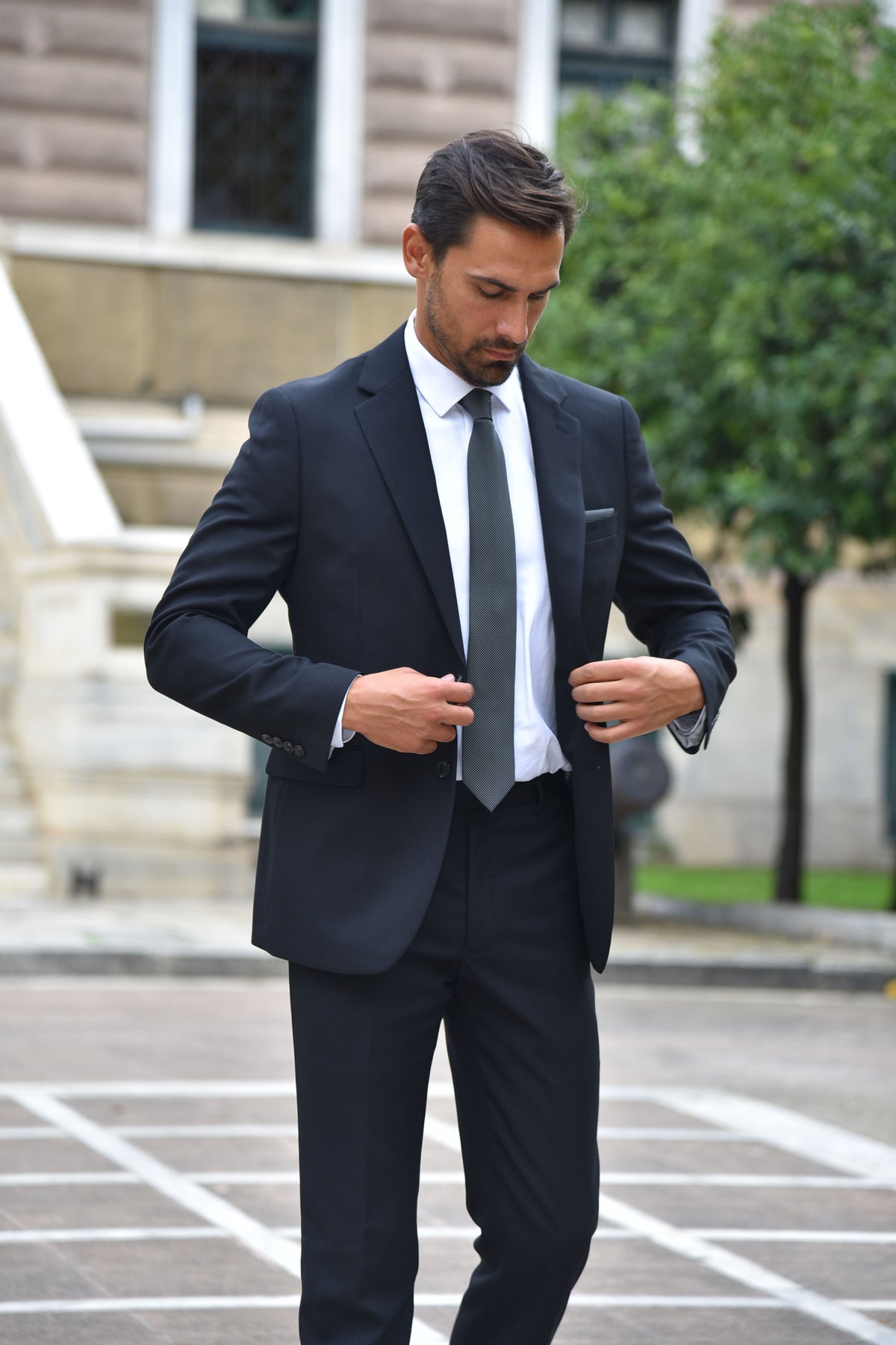 Ανδρικό Κουστούμι σε Κανονική Γραμμή Μαύρο