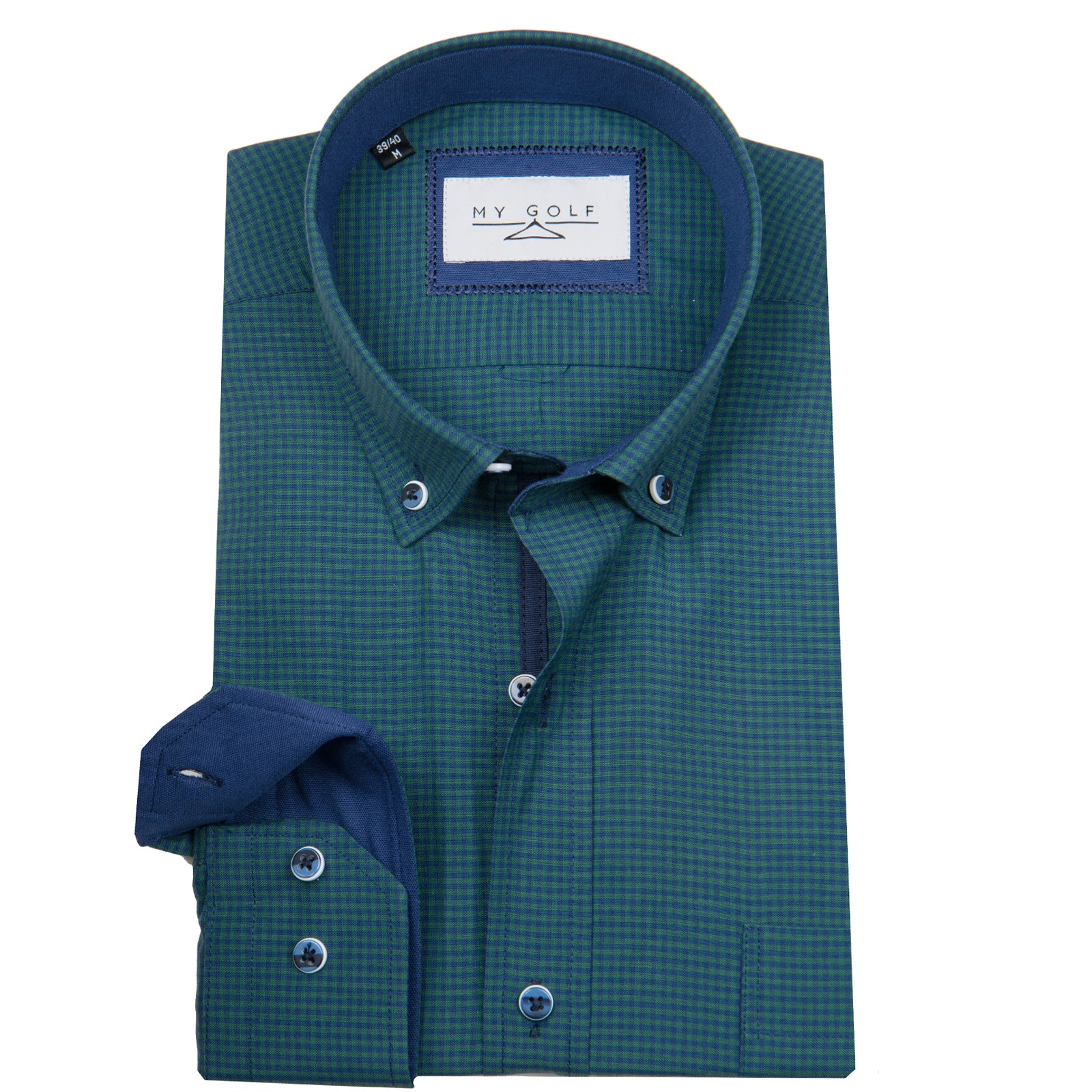 Ανδρικό Καρό Πουκάμισο Μπλε Πράσινο