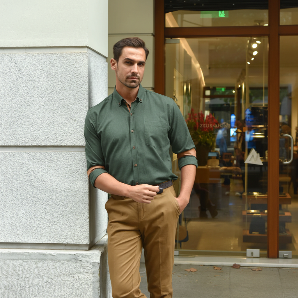 Ανδρικό Μέντα Πουκάμισο με Ταμπά Λεπτομέρειες